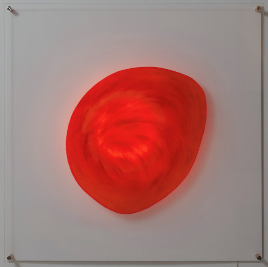 Gun Gordillo, ref 114, rouge, 2003, neon/ plexiglas/ bois, 120 x 120 x 10 cm