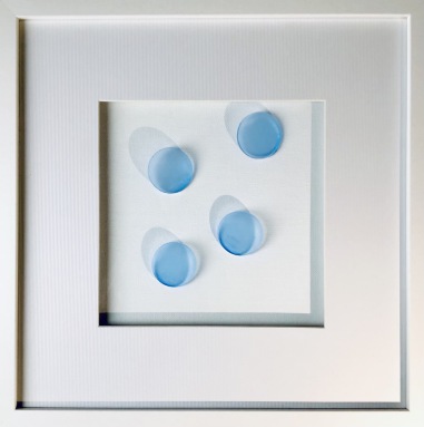 Carlos Medina, ref 009, Etude pour les transparents bleus, 2018, inserts d'acrylique sur carton avec tissu, 32 x 32 x 3 cm
